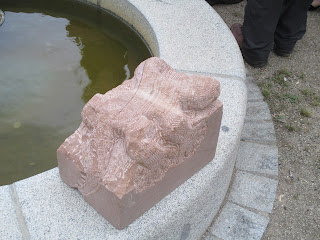 Gleich nachdem ich angekommen bin, sollte ich mir einen Stein aussuchen, aus dem mein erstes Kunstwerk entstehen sollte. Ja ich war noch gar nicht entschlossen was ich wohl machen könnte. Erst wollte ich mit etwas ganz einfachem beginnen. Doch als unser Kursleiter sagte: "Mach doch ruhig etwas schwierigeres, das wird schon was" wurde ich mutig und suchte mir diesen Stein aus:
